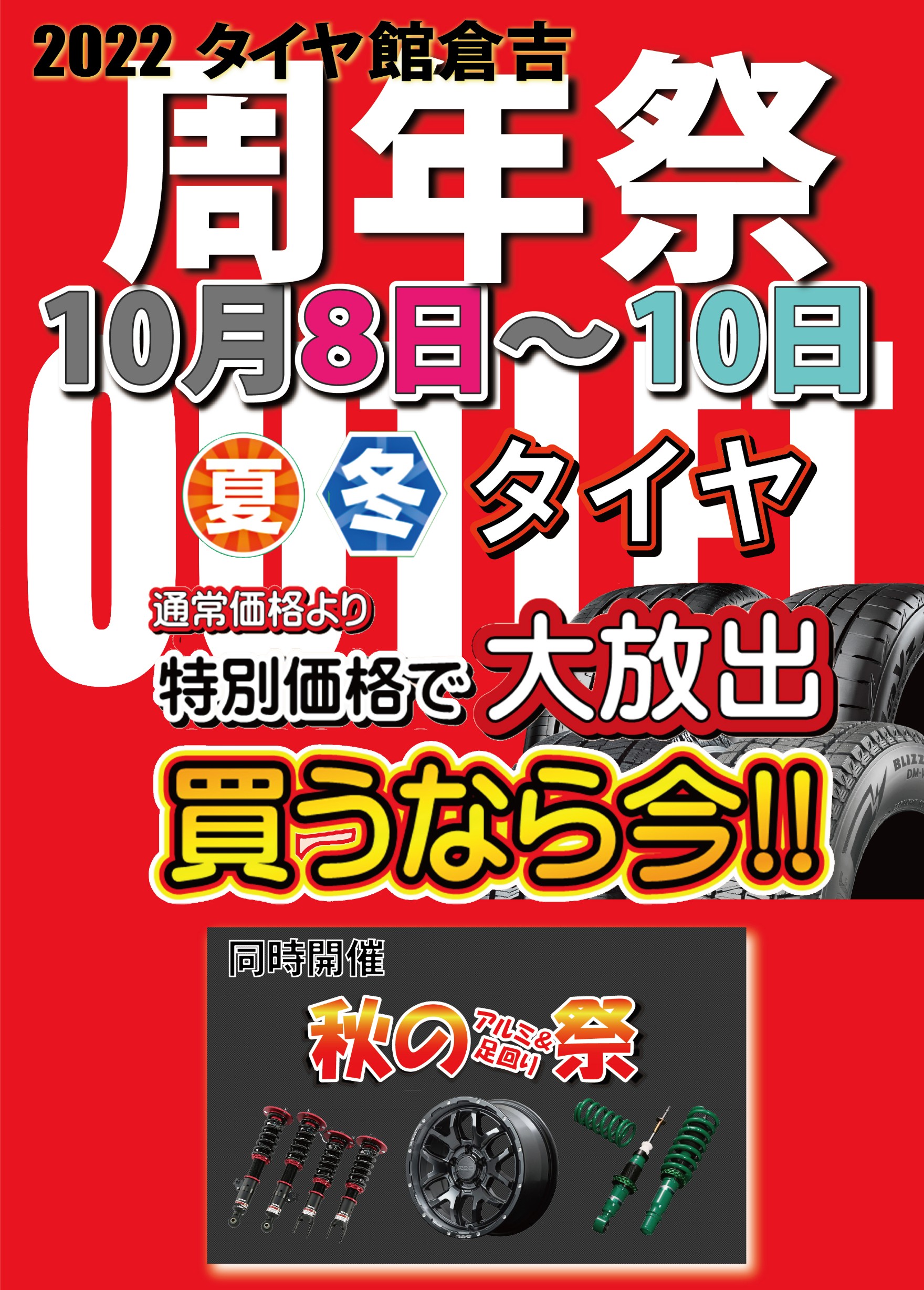 周年祭、お買い得のタイヤ・ホイールをご用意!