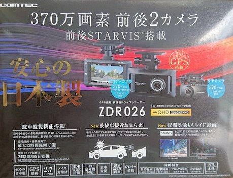 今回取付したのはコムテックの前後2カメタイプZDR026です。