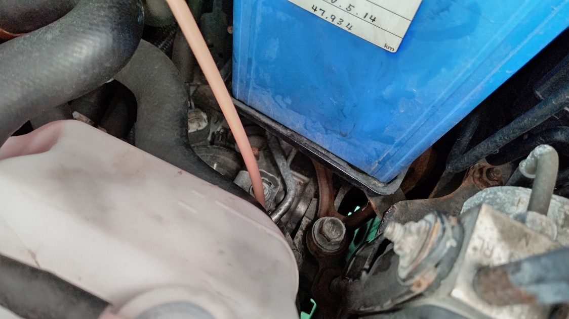 レベルゲージを抜き、ホースを挿入し交換していきます。