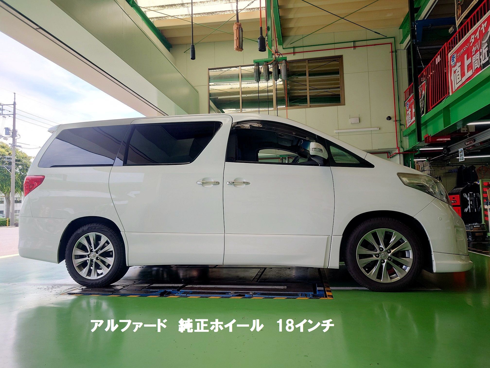 I様のアルファードは純正で18インチが付いていましたが、純正ホイールを