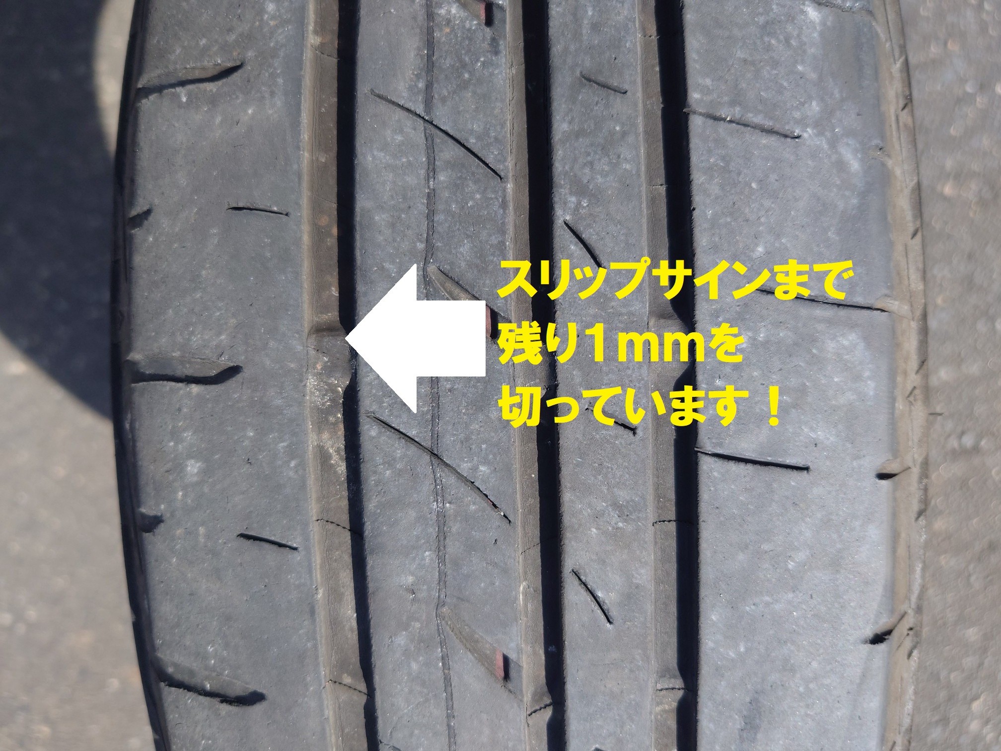 雨が降ると溝の少ないタイヤでは制動距離がのびてしまい安全に止まることができません。