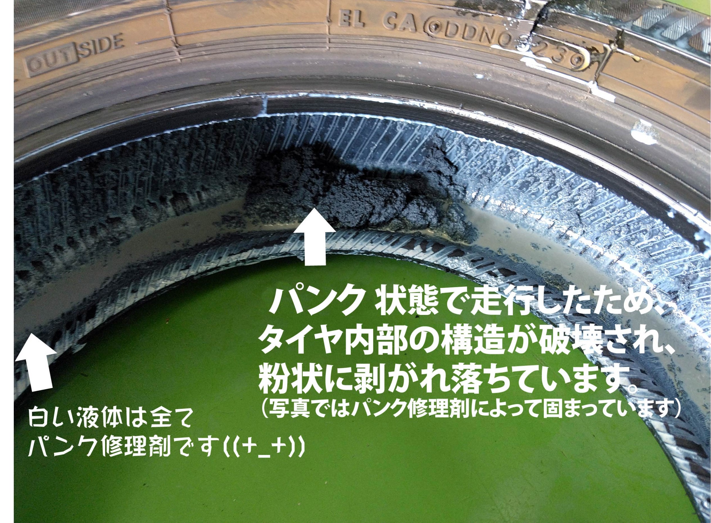 そこにパンク修理剤が混じって阿鼻叫喚の世界:;(∩´﹏`∩);: