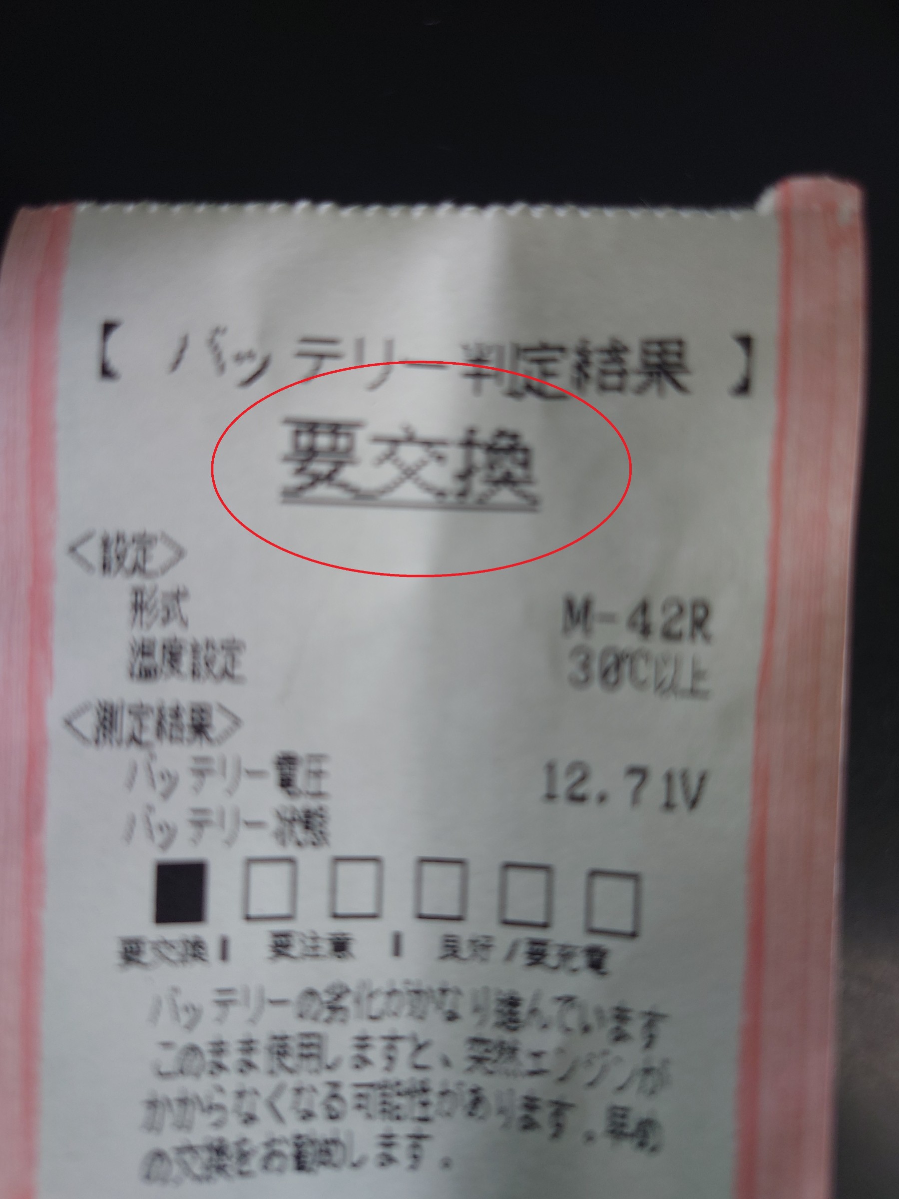 交換が必要です!という判定が出ました。