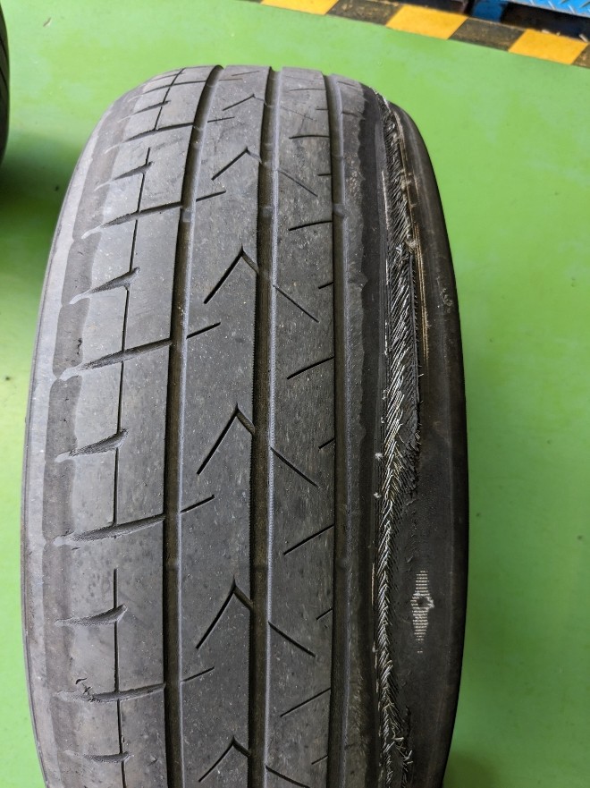 タイヤから中のワイヤーが出ていました。
