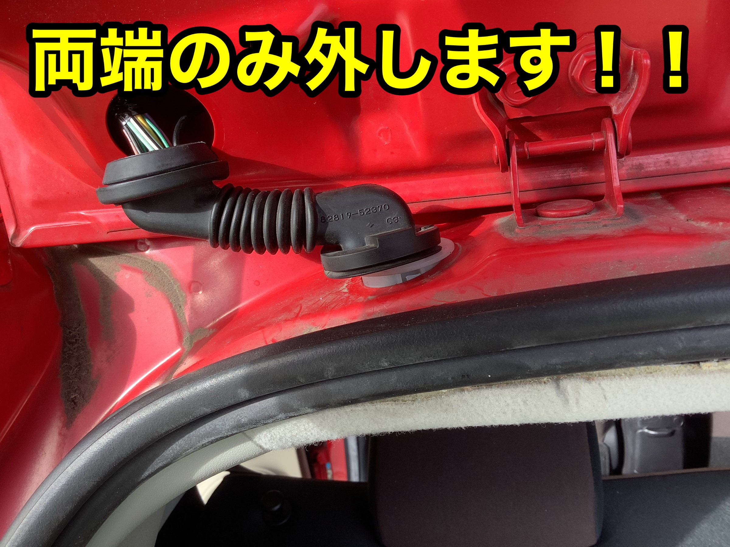 リアカメラハーネスを引き込みます。