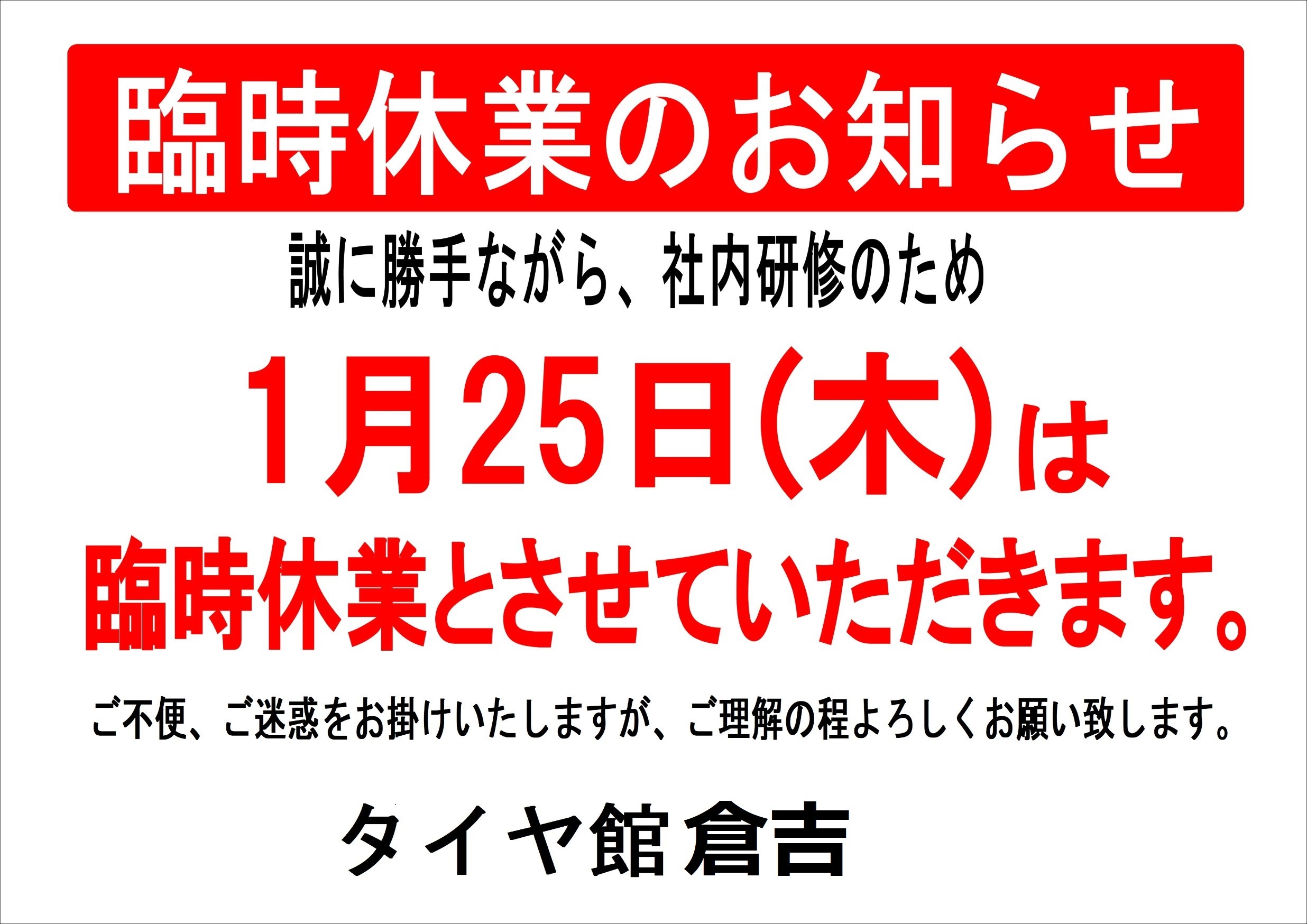 まことに勝手ではございますが、1月25日(木)は、社員研修のため臨時休業とさせて頂きます。