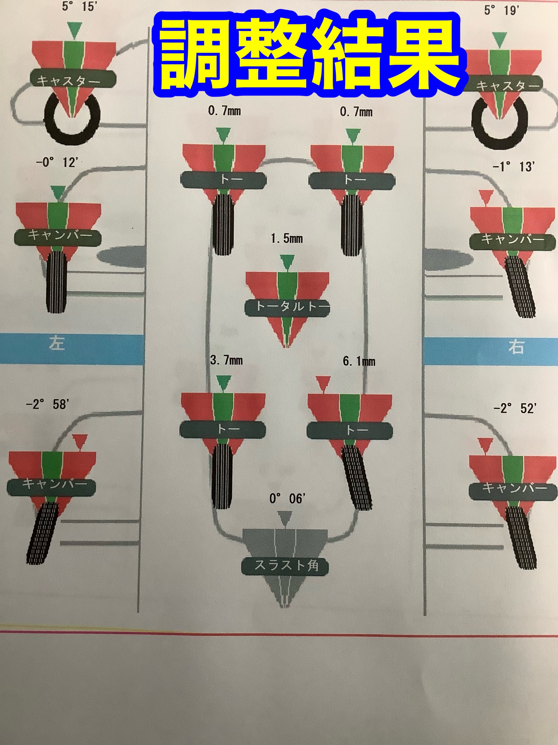 【SUZUKI SWIFT ZC33S】アライメント調整!! ポスト 2024年2月6日 先日、ヘッドライトコーティングを施工させて頂いた方の続きになります。 数年前にアライメント調整をさせていただきましたが、 今回は、長持ちプランの測定でご来店いただきました。 早速測定に入ります!! フロントタイヤの右側が大きくズレていますね。 このズレを元の位置に調整していきます。 これで、フロントタイヤの向きは正常になりました! アライメントのことならタイヤ館倉吉にお任せあれ!! カテゴリ:タイヤ関連 担当:モリ
