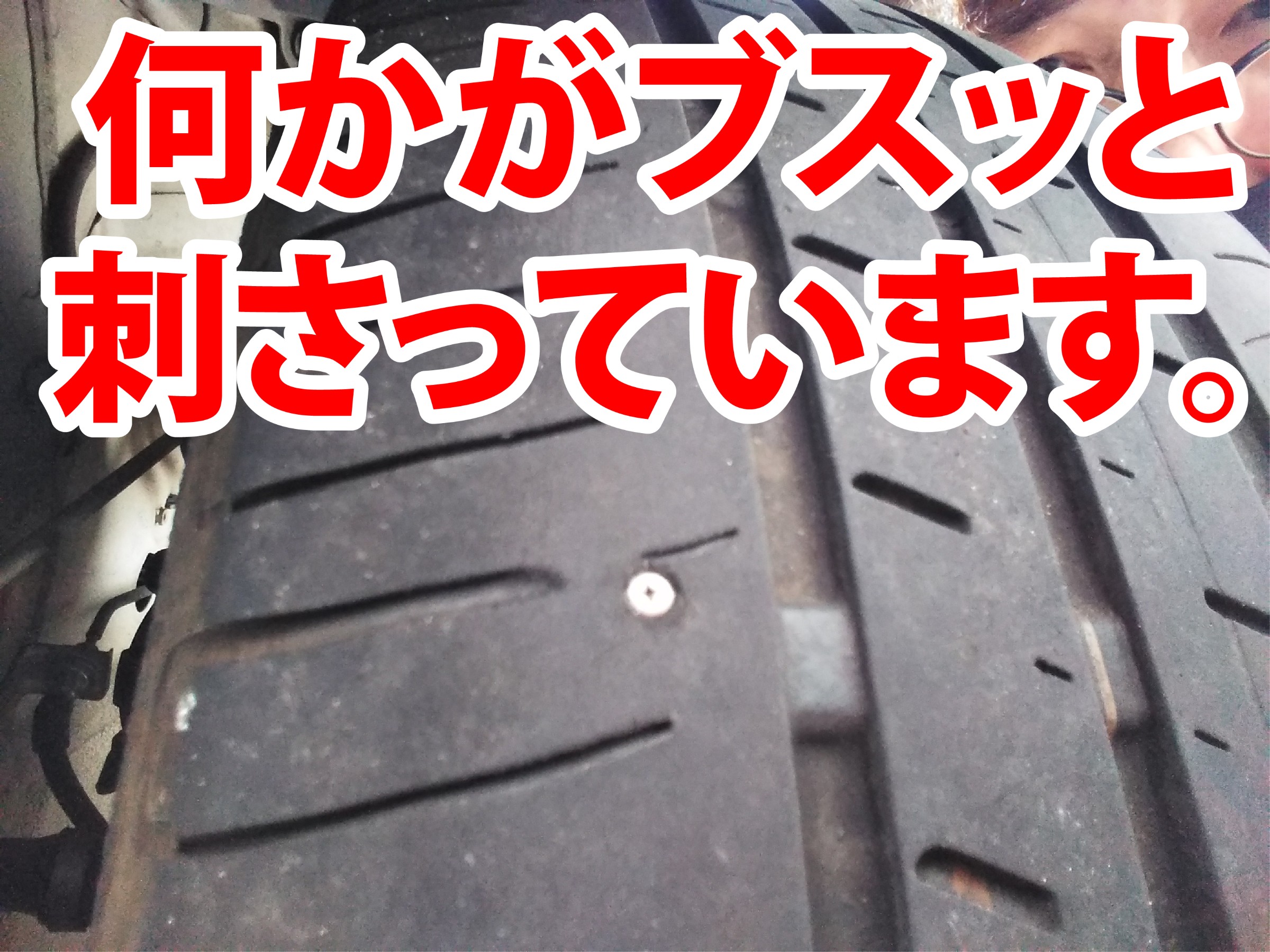 確認すると、見事に何か刺さっています。