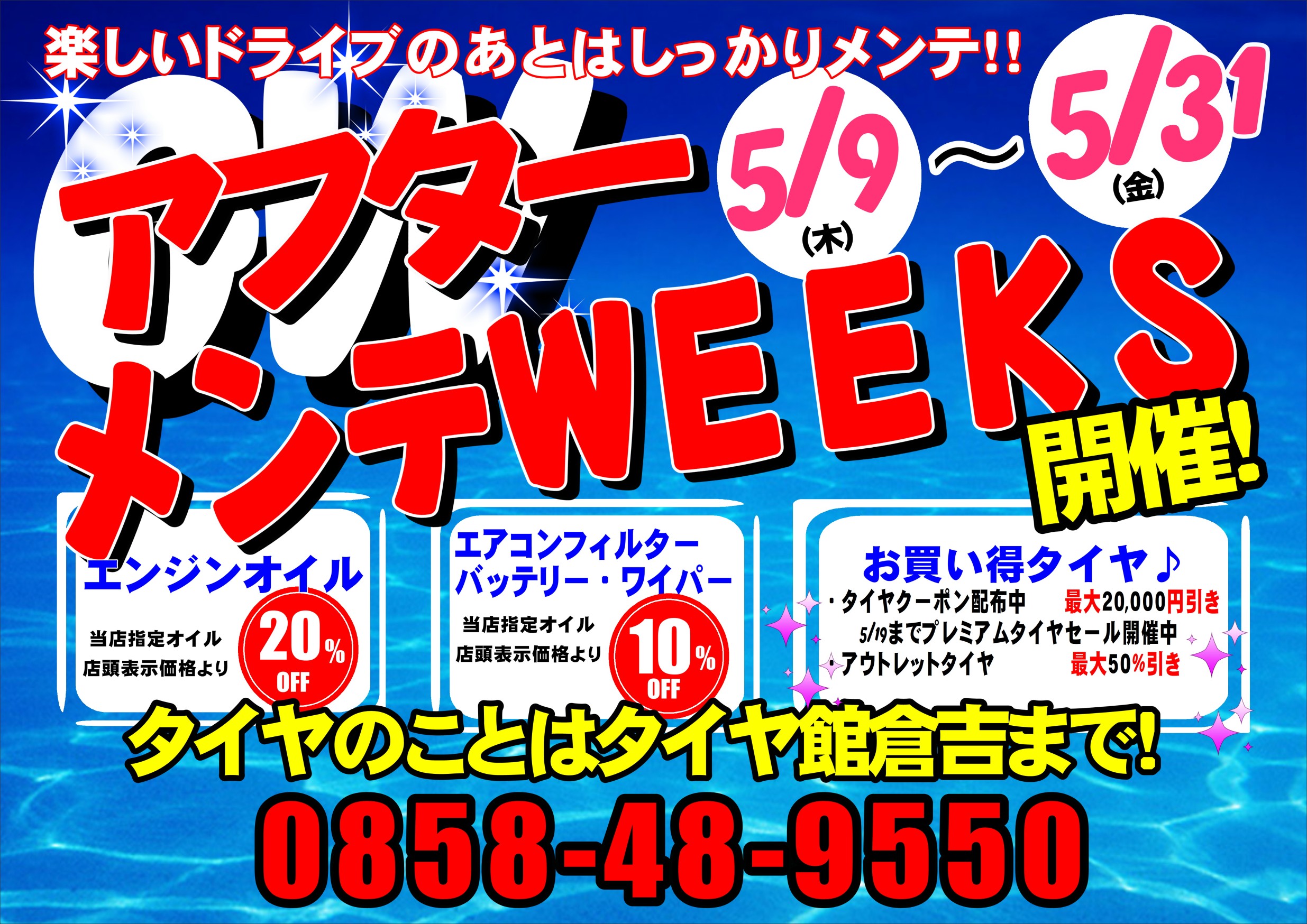 タイヤ館倉吉ではアフターメンテWEEKSを開催します。