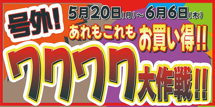 【ワクワク大作戦!5/20~6/6】あれもこれもがお買い得な期間!お見逃しなく!