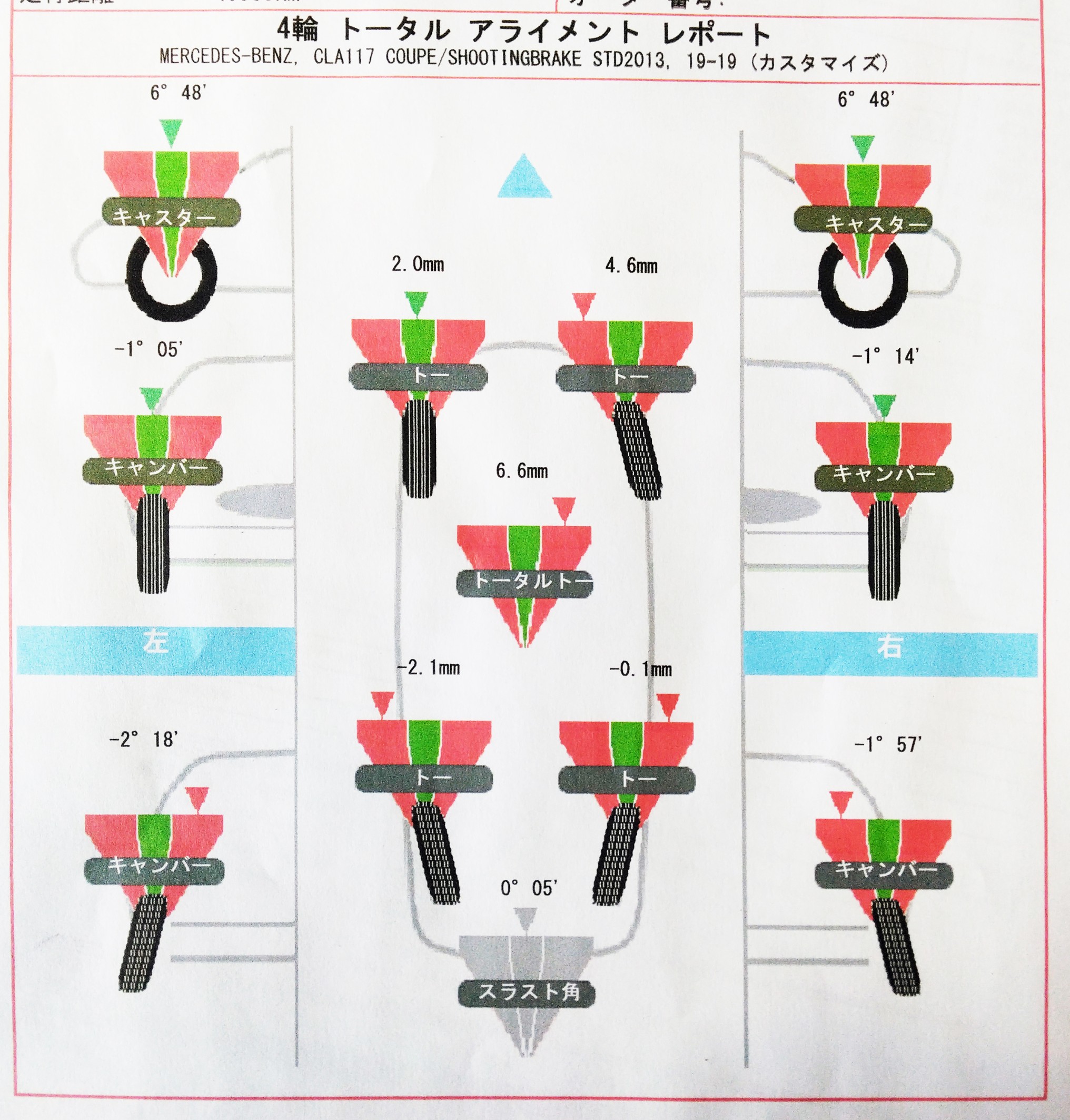 交換後、まずは今の状態をはあくするため、アライメントを測定していきます。