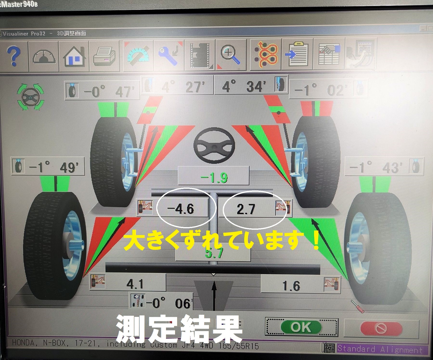 アライメント調整は1輪ごとに数値がはっきり出ますので