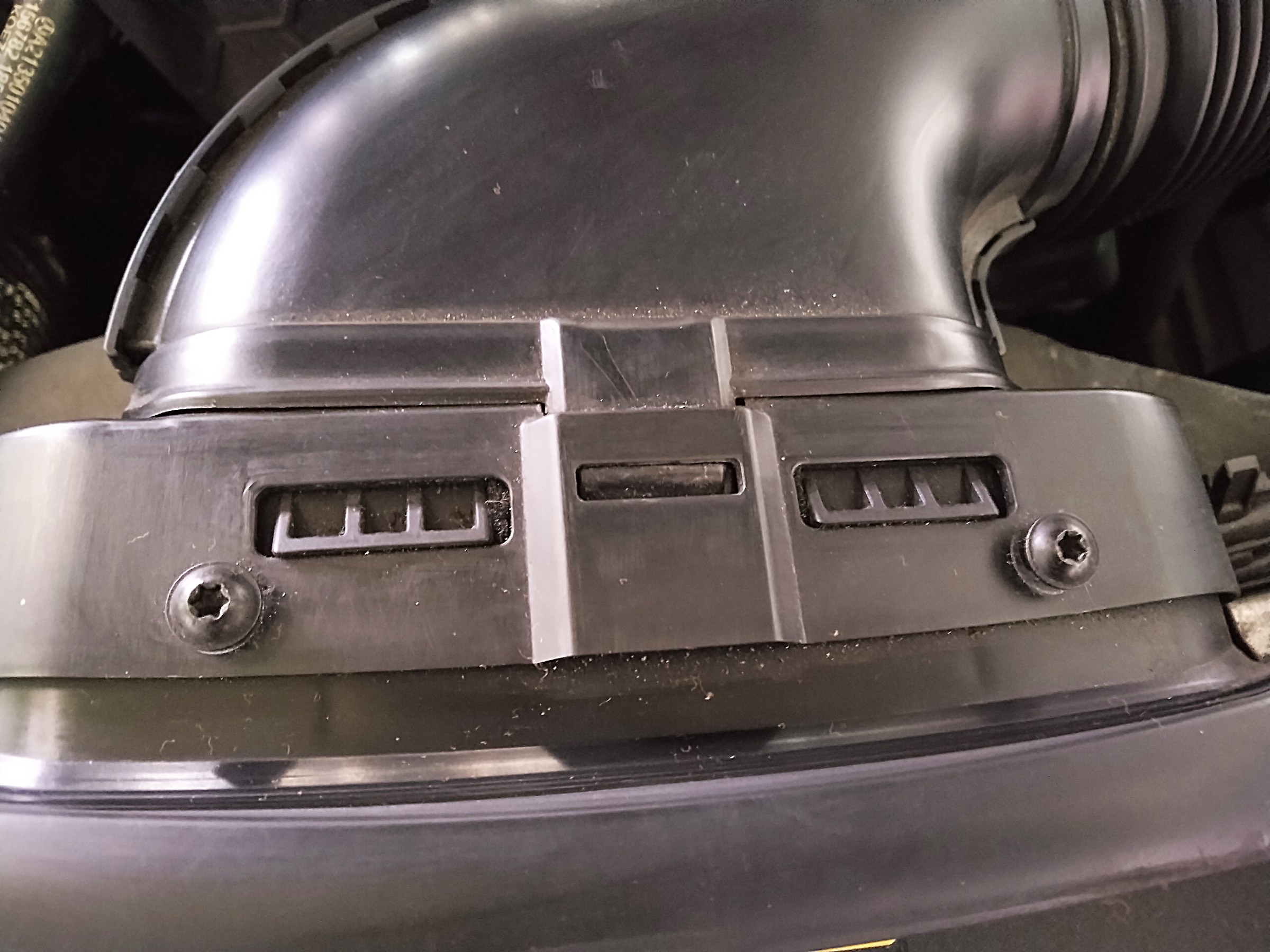 ダクトの手前側が外れたら、今度はエンジン側のフックを取り外します。