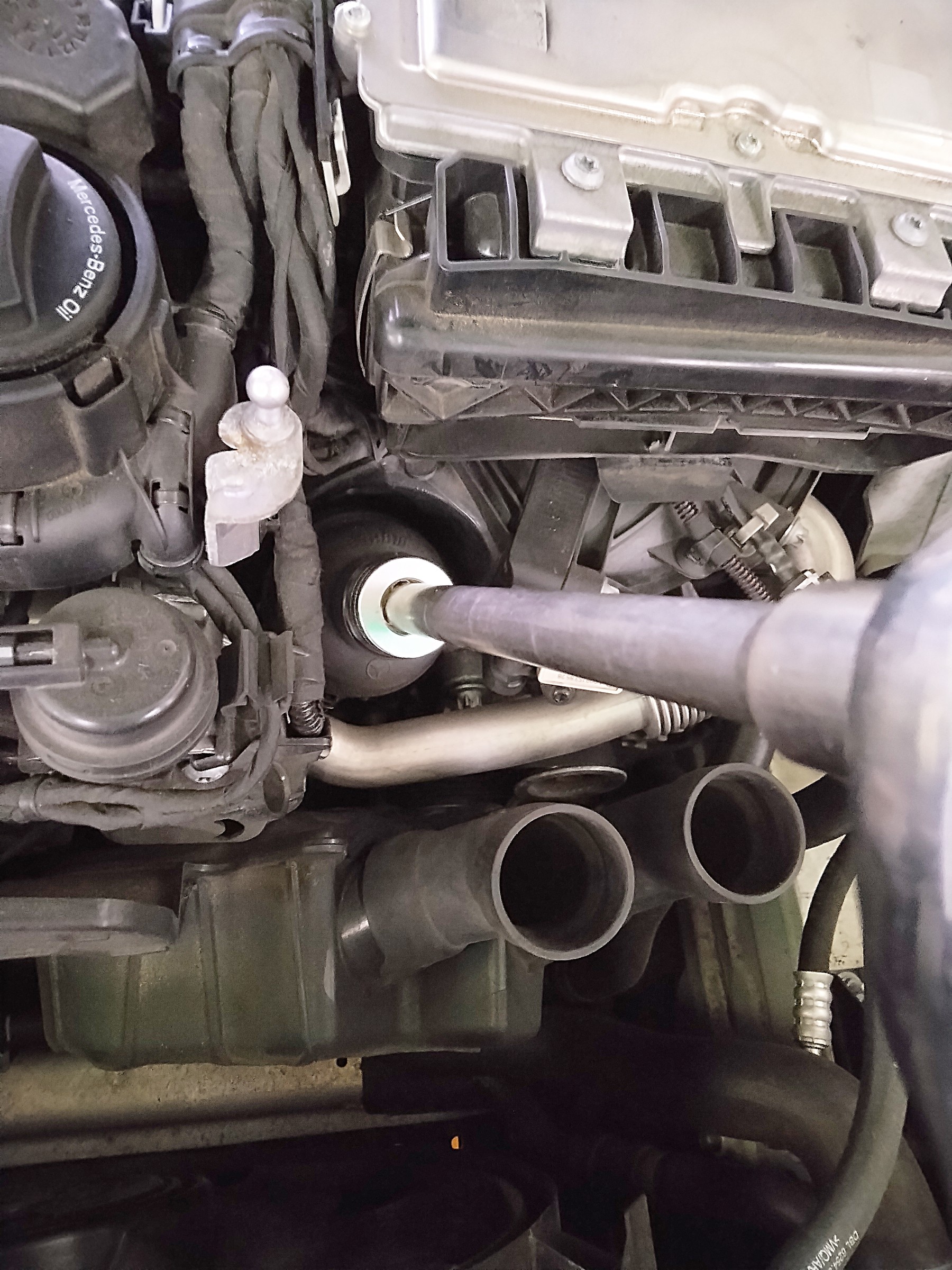 E220dのフィルターは奥深くにいて、かつ27㎜のソケットが必要になります。