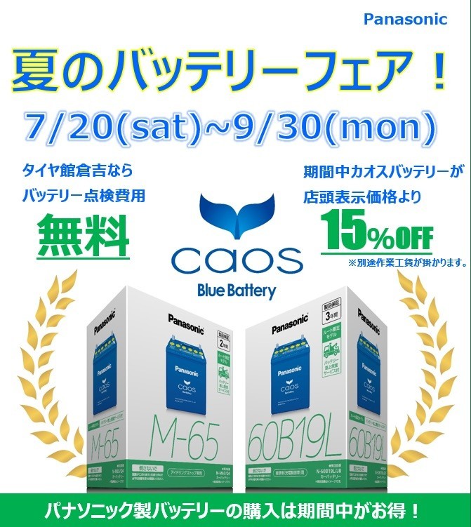 『タイヤ館』という名前ですが、バッテリー交換やっております!