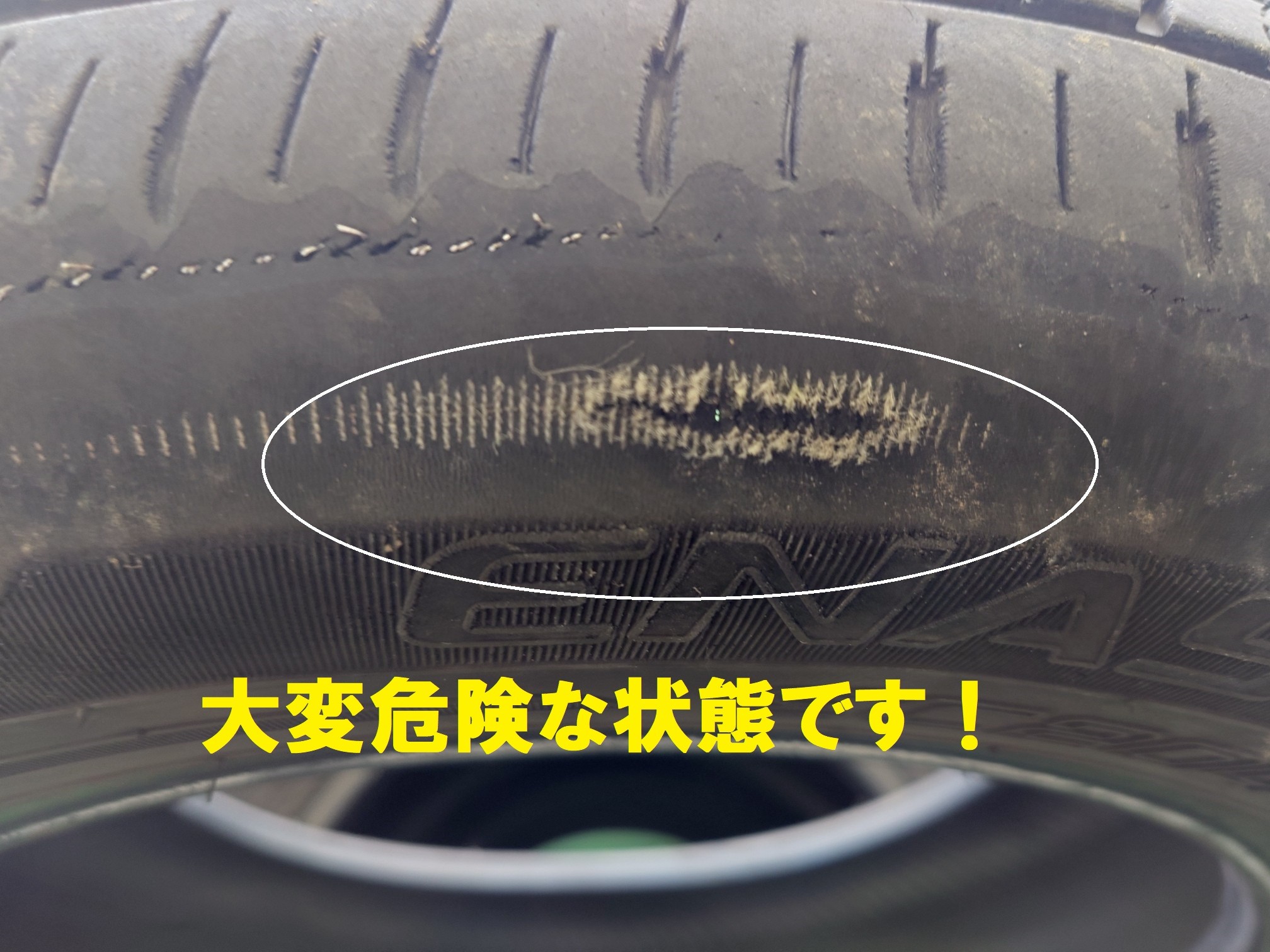 タイヤを見てみるとすごい状態!