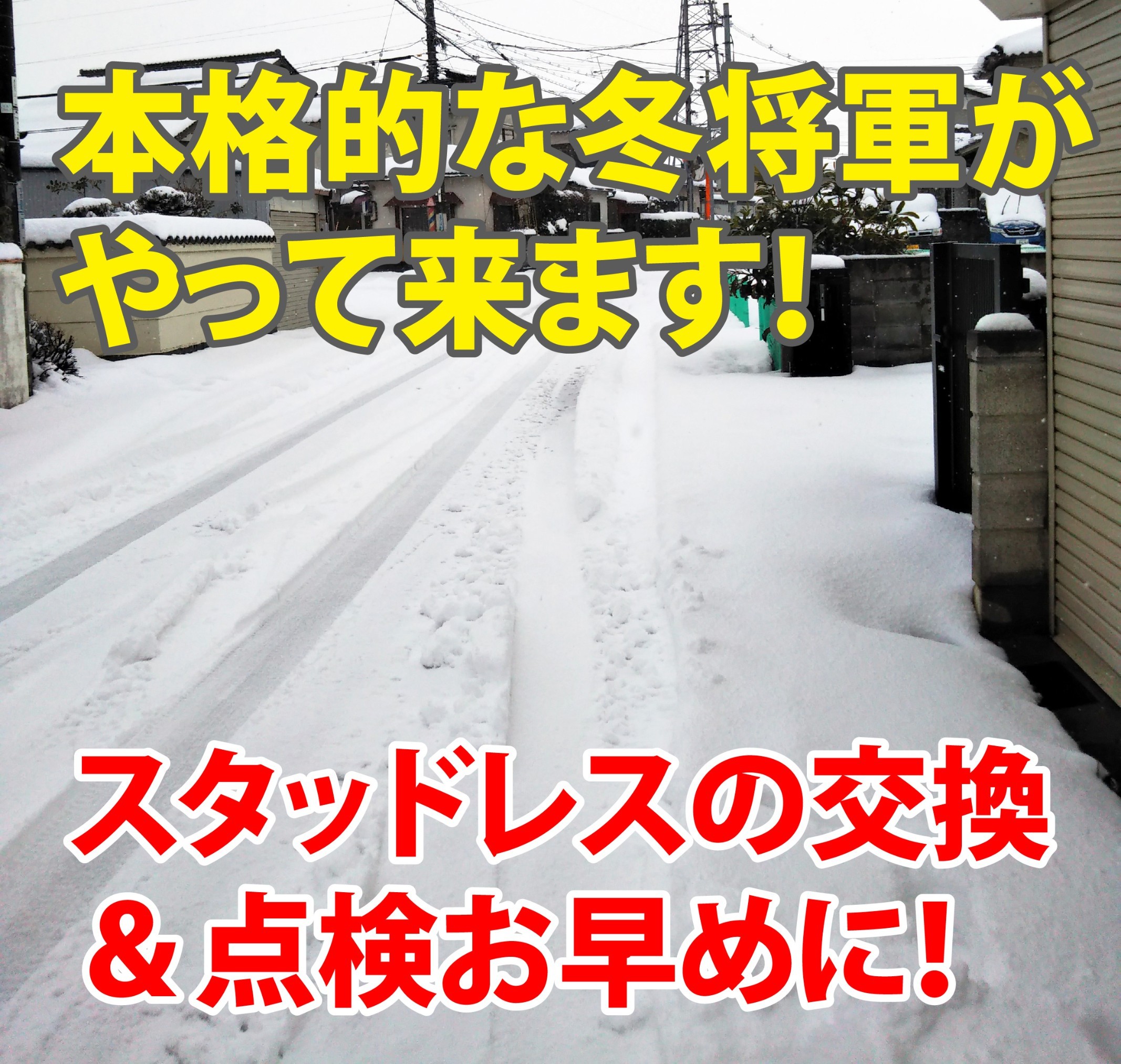 本格的な冬の到来です! ポスト 2024年12月14日 いよいよ冬将軍がやってきます。 みなさま雪道への備えは大丈夫ですか? スタッドレスの交換はお早めに! 又、使用して摩耗したり、時間が経って硬くなったスタッドレスは 完全な性能を発揮することが出来ません。 今のうちに取り付けられたスタッドレスタイヤの状態を 確認しましょう! タイヤ館倉吉ではいつでも皆様のお悩みにお応えします! 是非お問い合わせください。 タイヤ館 倉吉 住所:682-0017鳥取県倉吉市清谷町2丁目81 電話番号: 0858-48-9550