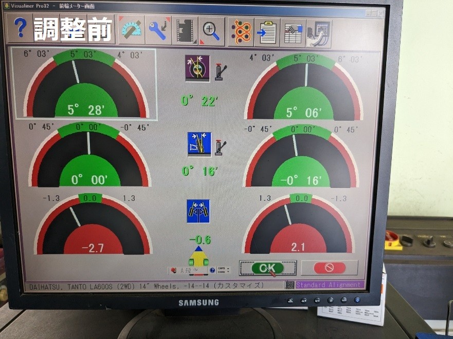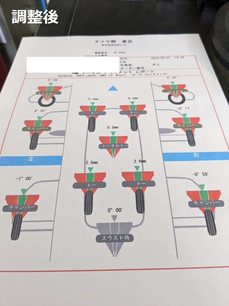 タント タイヤ交換 ポスト 2025年2月16日 今まで履いておられたタイヤが摩耗してきたために交換をしました。 今回は「静かで乗り心地が良いレグノがいい」ということでレグノを選んでいただきました。 またレグノの性能をフルに発揮させるためにアライメント調整も行いました。 測定してみると、タイヤが左側を向いていました。 フロントトーの2か所調整し、基準値に合わせました。 タイヤやアライメントはタイヤ館倉吉にお任せください。 担当:井上