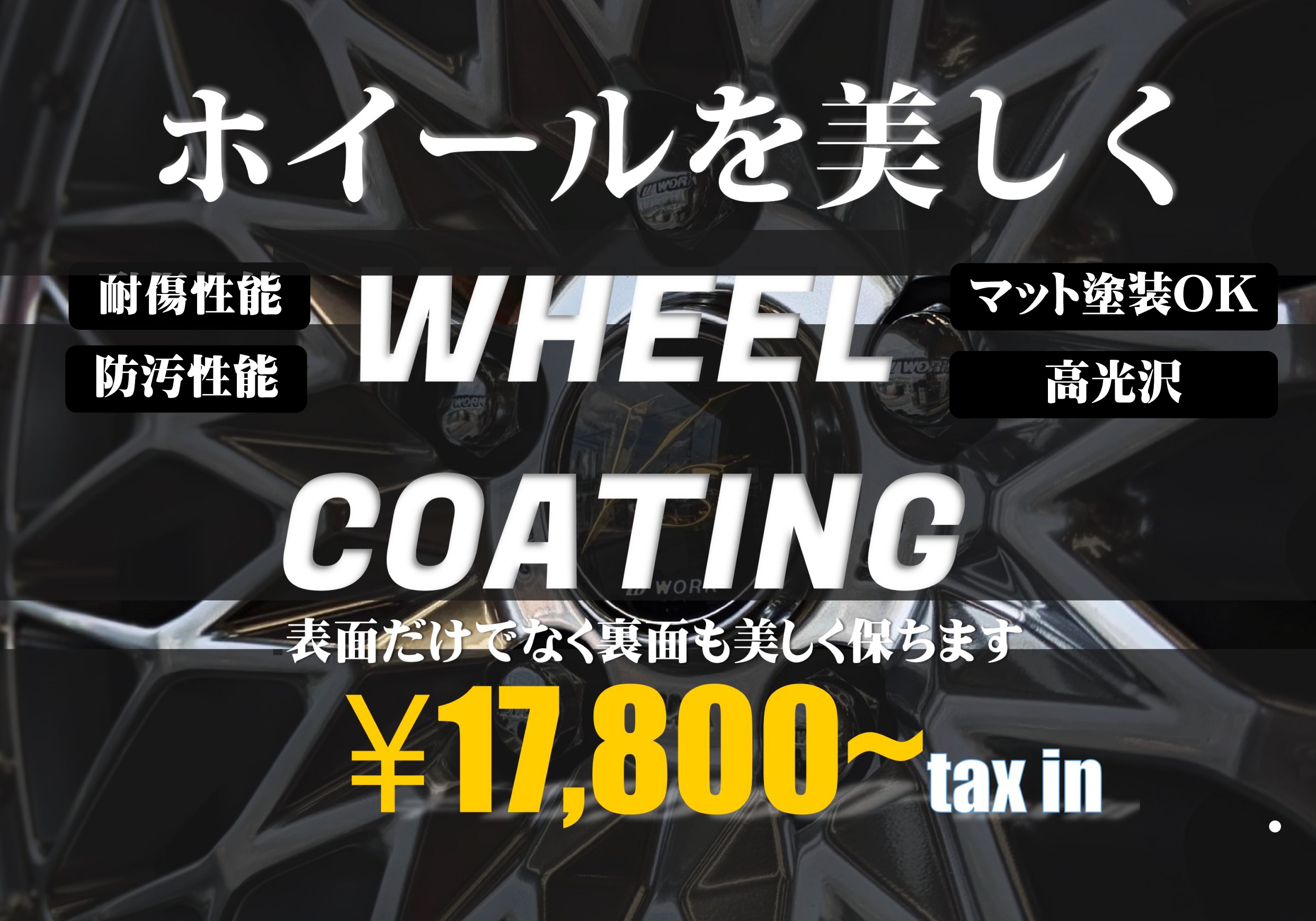 ホイールを錆や汚れから守るためにも、是非新しいホイールにはコーティングを施工してください。