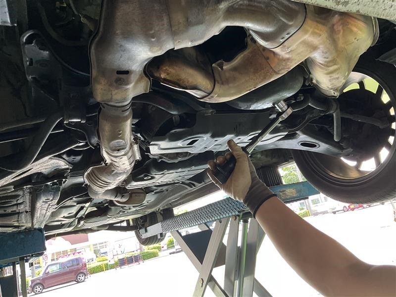 さて、オイル交換をするためにオイルパンドレンボルトを緩めていきます。