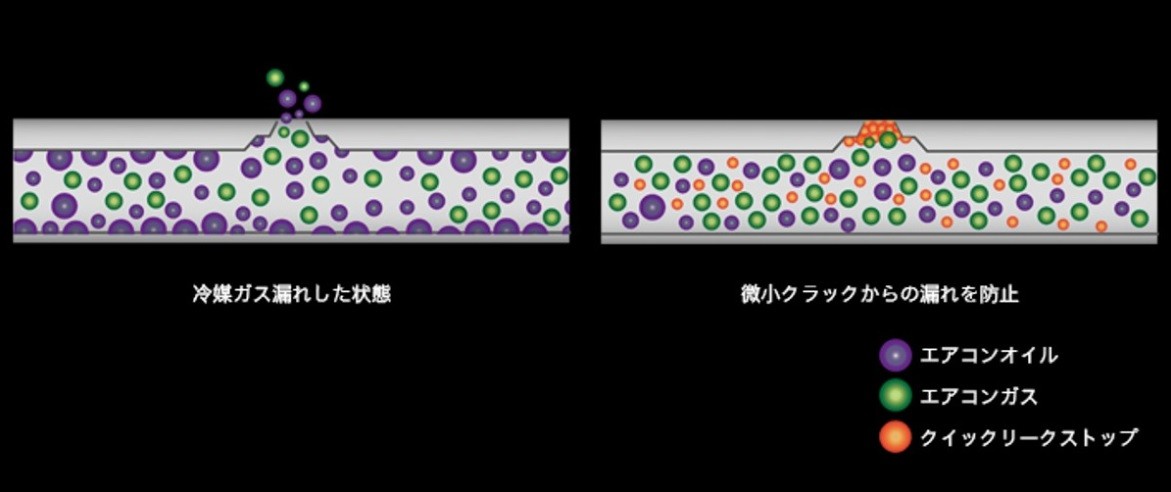 ガスチャージ時にA/C PRO クイックリークストップを施工することにより、