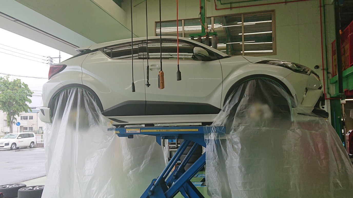 まずは下回りを洗浄して乾かし、リフトアップしてタイヤを外します。