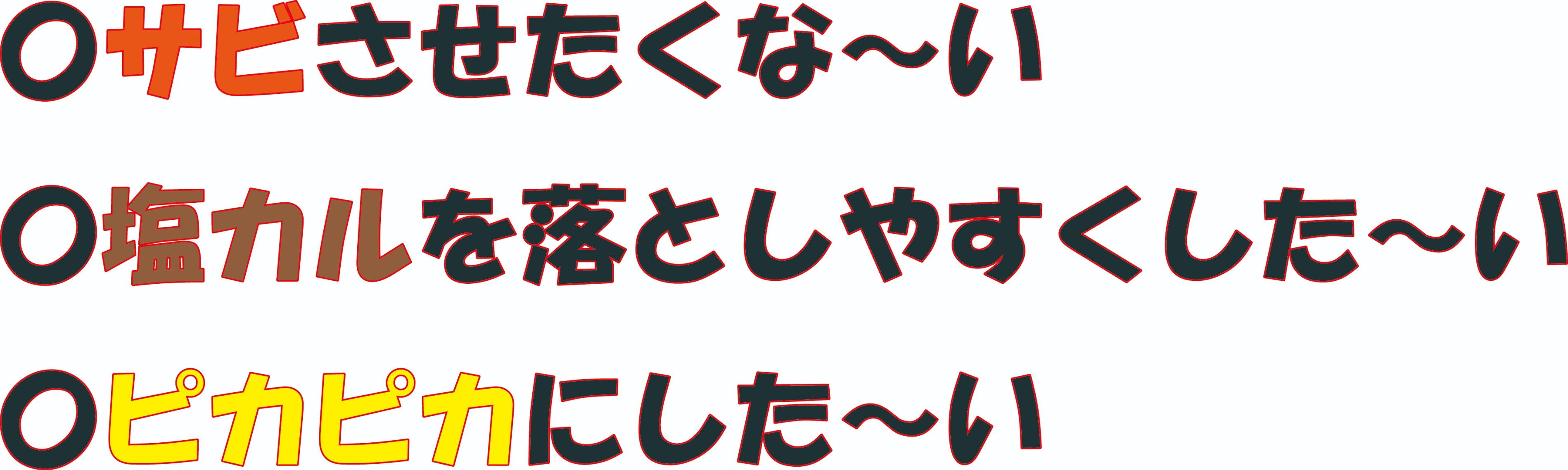 この塩が金属部分に付着するため、サビの原因となってしまいます。