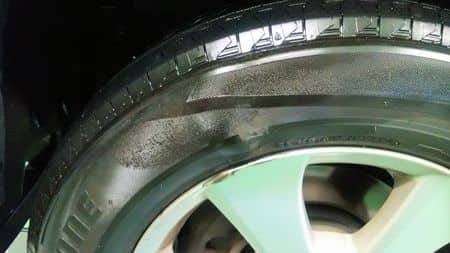見てみるとタイヤの側面にこぶができていました。