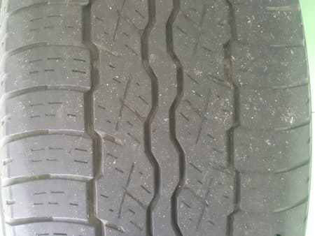 写真を見ていただくと…新品タイヤに比べて溝が