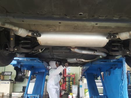 ※写真はマフラー防錆コーティングをしている