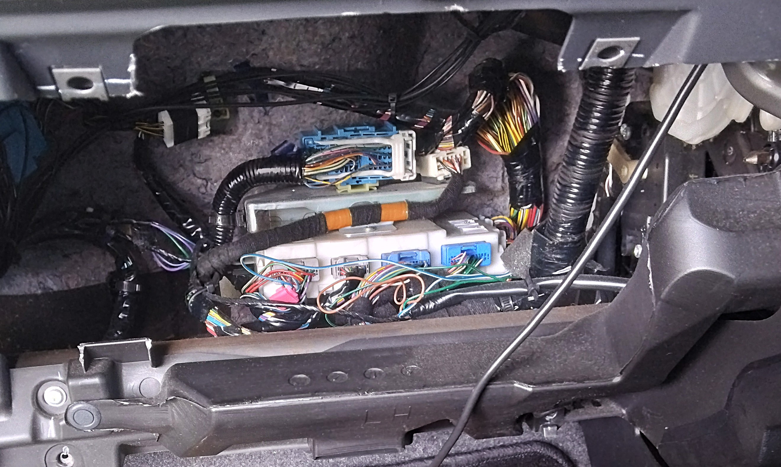 グローブボックスを外し、アンダーカバーとヒューズカバーも外し、ECUが登場!
