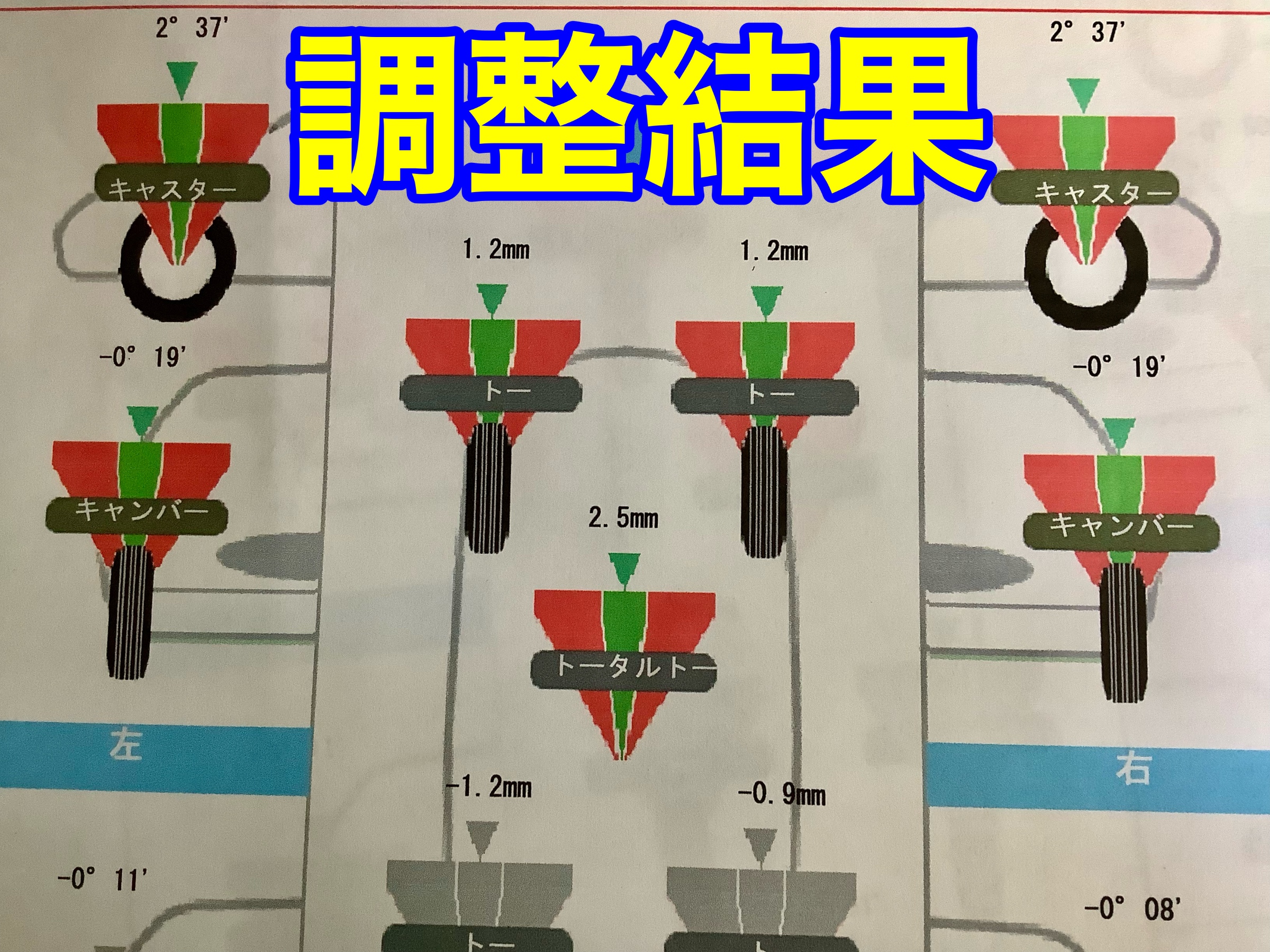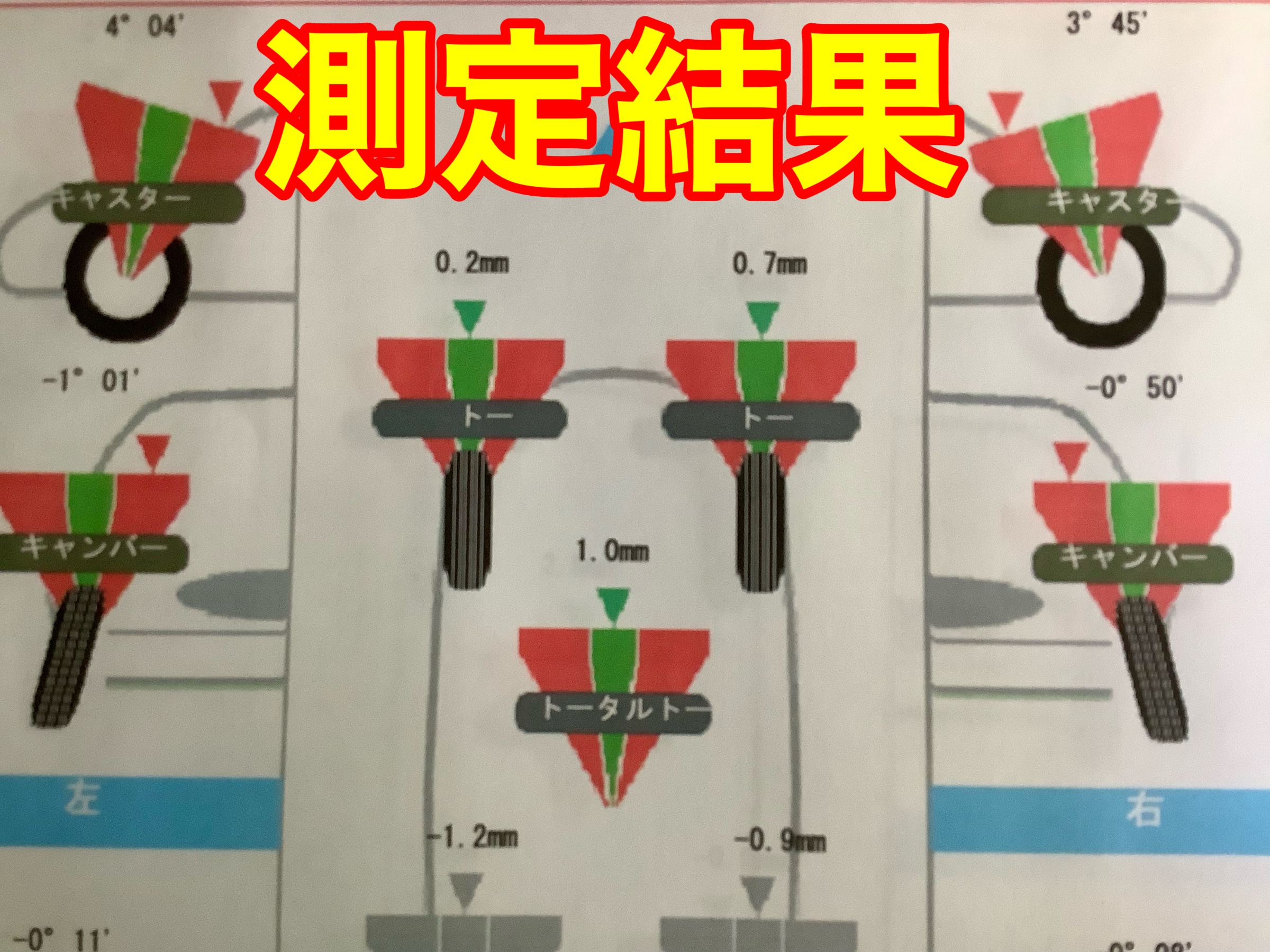 キャスター、キャンバー、トー全てがズレていますね!