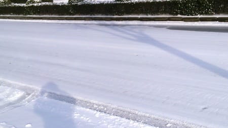 3時になっても道路が圧雪の状態です。