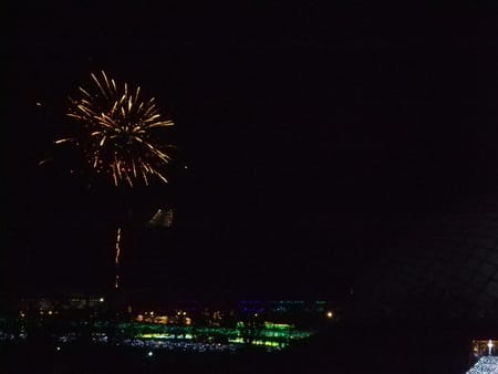 フラワーイルミネーションPART2 ポスト 2016年1月28日 きのうに引き続きフラワーイルミネーションのお話です。暗くなりイルミネーションがきれいになるのはいいんですが、さすが大山のふもと!さむい!!!19:00から花火が上がるので少し待っていました。200発の花火なのであっという間に終わってしまいますが、園内のイルミネーションとその先に見えるナイタースキー場の照明とあわせてなんともいえない景色でした。澄んだ冬空に上がる花火はきれいですね! 担当:永田