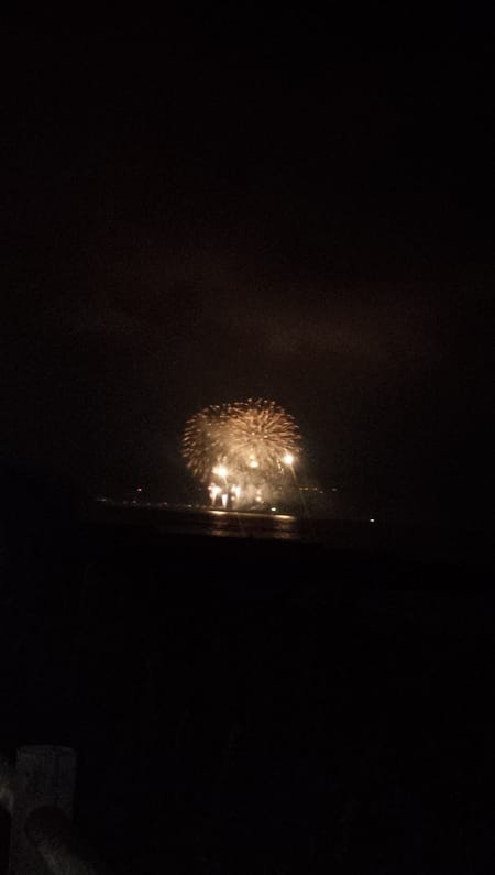 渋滞を抜けると祭り(貝がら節祭り)の花火をしていたので
