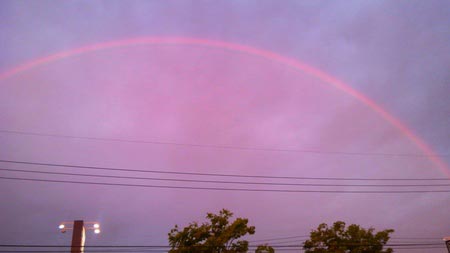 6時を過ぎて夕焼けが見えたなと思ったら7時前に虹が出ていました。
