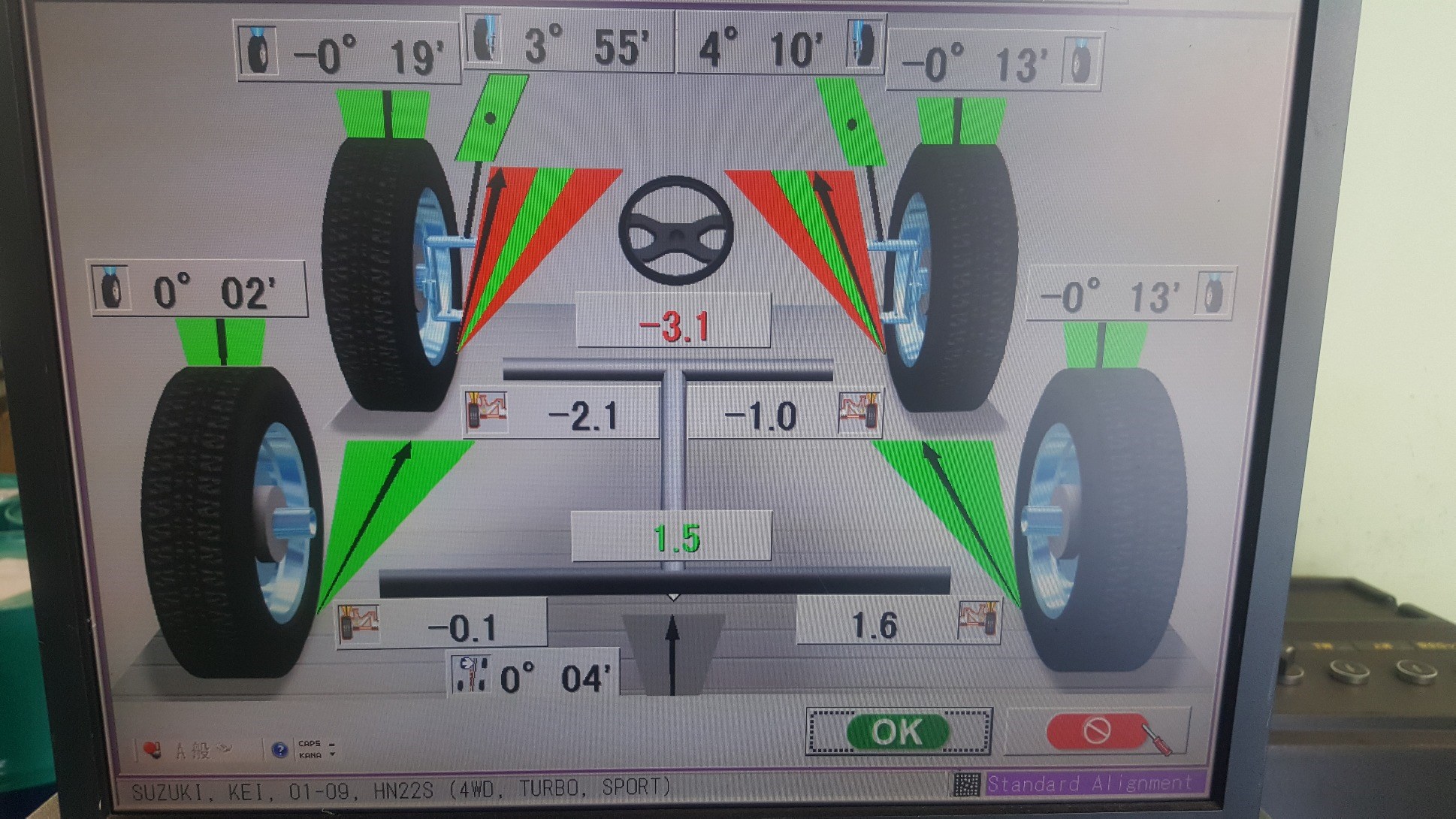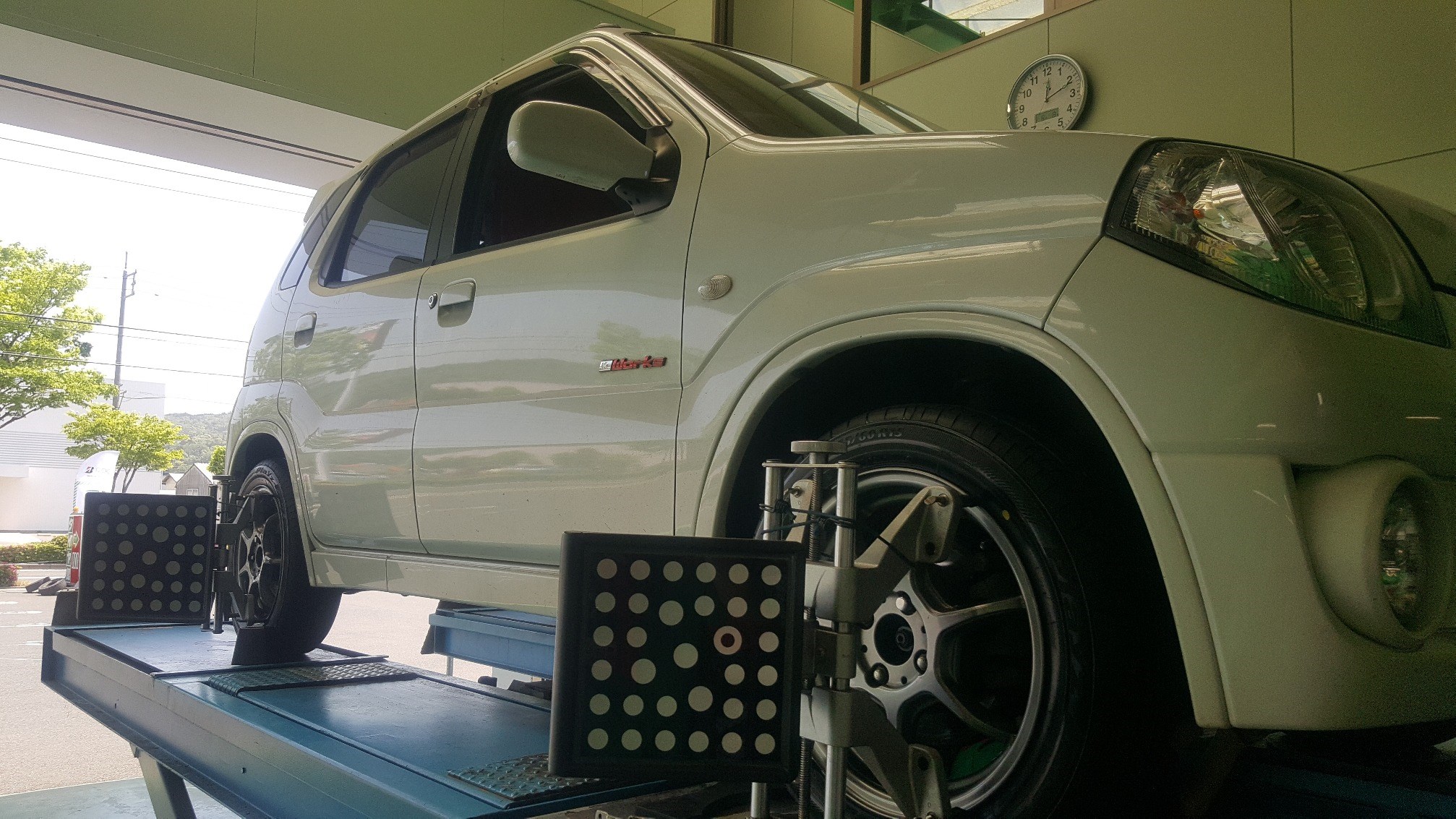 Keiワークスにお乗りのお客様に、タイヤ交換とアライメント