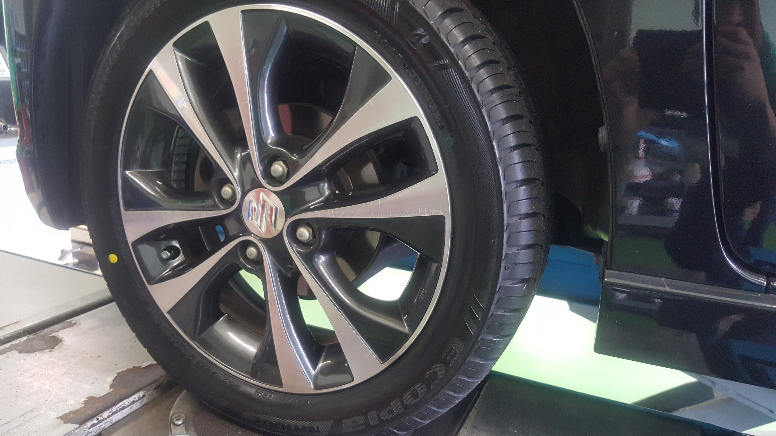 新規でご来店のお客様に、タイヤ交換とアライメント調整
