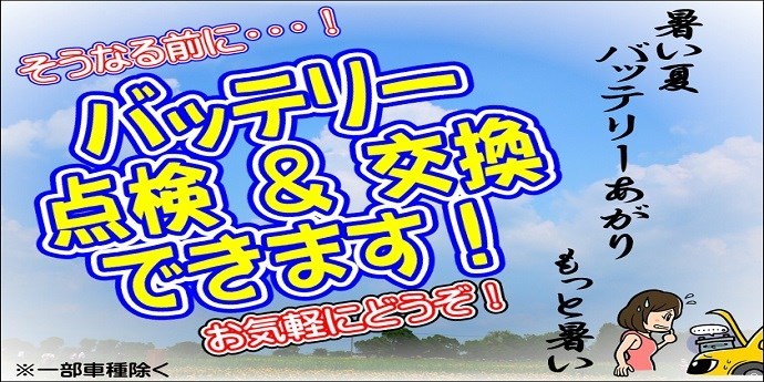☆ 8月定休日のお知らせ ☆ ポスト 2017年7月31日 8月の定休日をお知らせいたします(^^) ◇8/2(水) ◆8/9(水) ◇8/16(水) ◆8/23(水) ◇8/30(水) お子様が夏休みで、家族で旅行や海に出かけたり、 お盆で帰省したり・・・お出かけが多くなる8月!! お出かけ先で車がトラブルにならないように 愛車の安全点検をされませんか☆ もちろん無料で点検いたしますよ!!! みなさまのご来店をスタッフ一同、お待ちしてます☆ カテゴリ:お知らせ