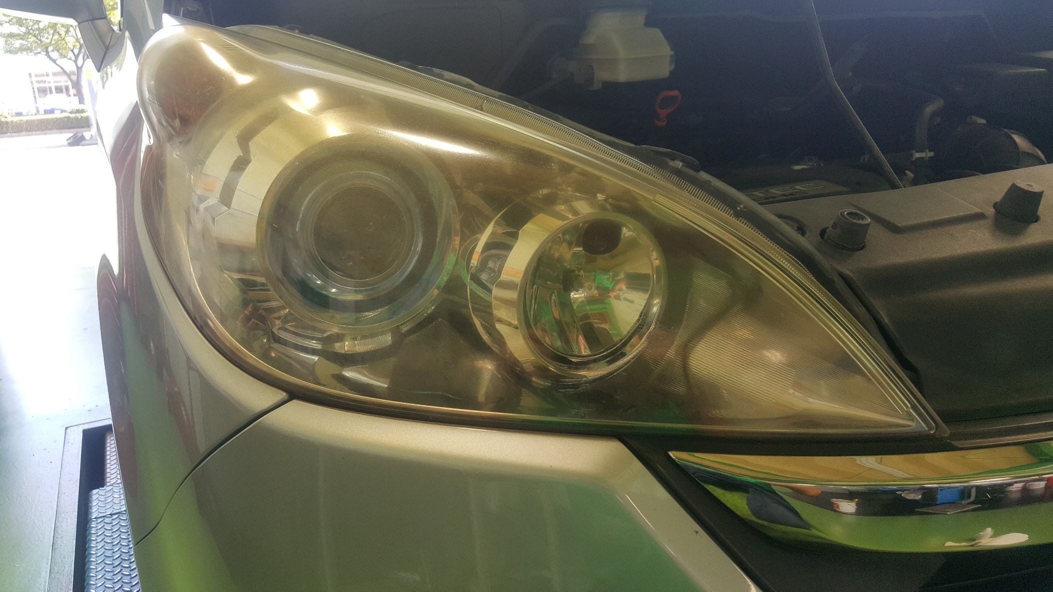 ☆ ヘッドライト コーティング ☆ ポスト 2017年8月3日 ステップワゴンにお乗りの客様に、ヘッドライトコーティングを 施工させていただきました~(^^)V 施工前は白く、くすんでますね(涙) 施工後は・・・ まぁ~何てことでしょう!!!くすみが取れて、クリアーに なってます☆☆ お客様にも喜んでいただけましたよ♪ ライトのくすみ・黄ばみでお悩みの方は、 タイヤ館倉吉店にご相談くださいね☆☆ 担当:春 日