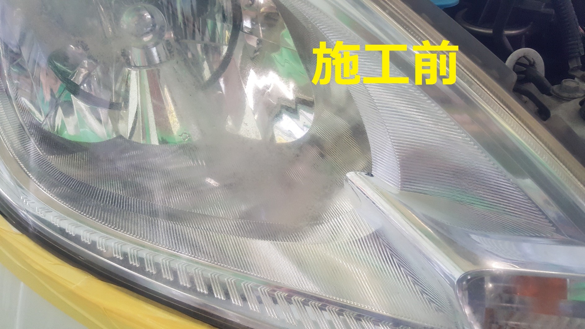 フィットにお乗りの常連のお客様に、ヘッドライトコーティングを