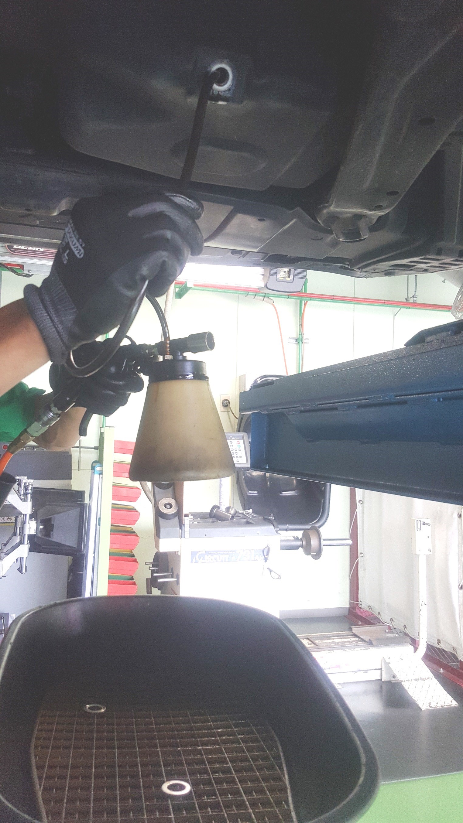 オイル抜き取り ポスト 2017年8月19日 オイル交換時の作業ですが、車によってはオイルを抜くための ドレンボルトを外してもキレイに抜けない場合があります。 オイルパンの底よりもドレンボルトの位置が高い場合中に残ってしまいます。 そこで空気の力を使って強制的に抜き取り、オイルパンの中に残らないように することが出来ます。 全ての車種に出来るわけではありませんが、こうすることで汚れたオイルを 残さずに抜き取ってキレイなオイルを入れるという交換作業をやっています! 担当:永田