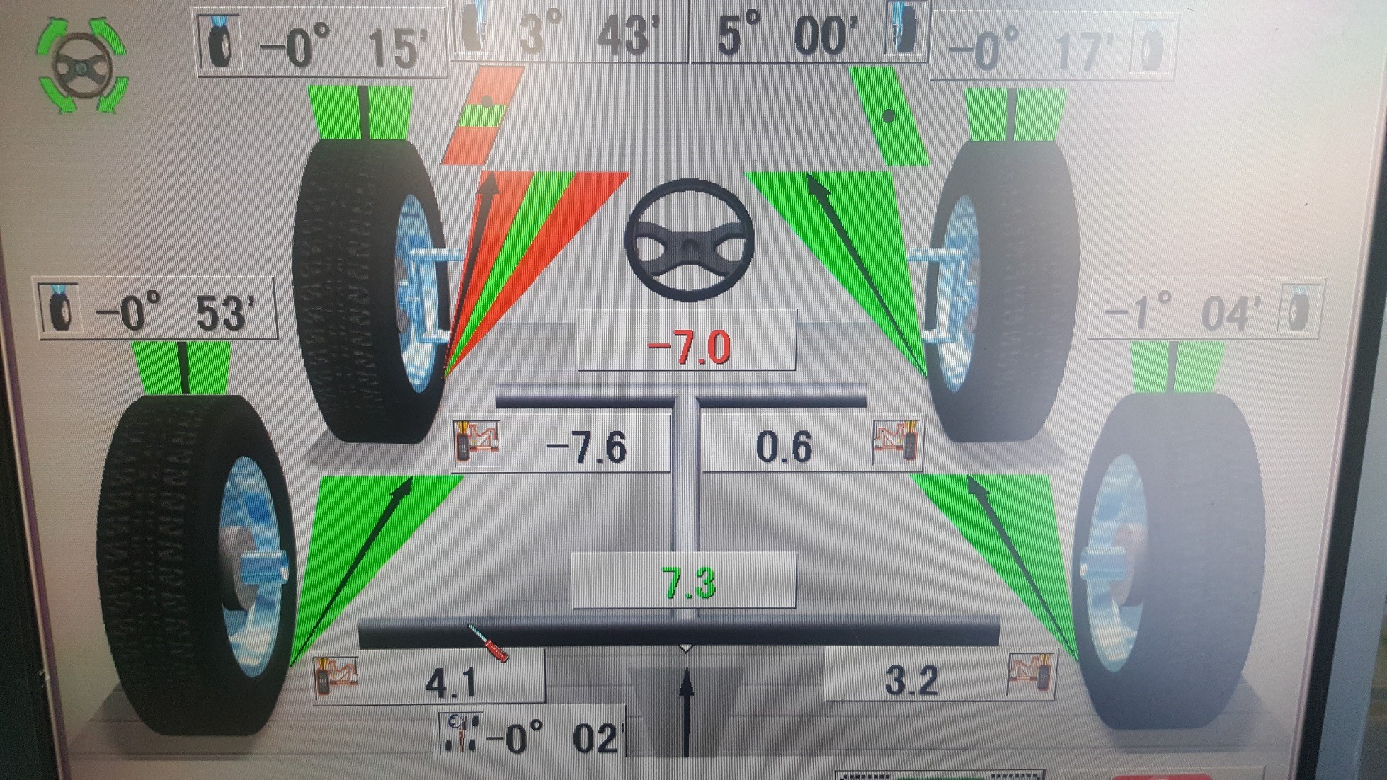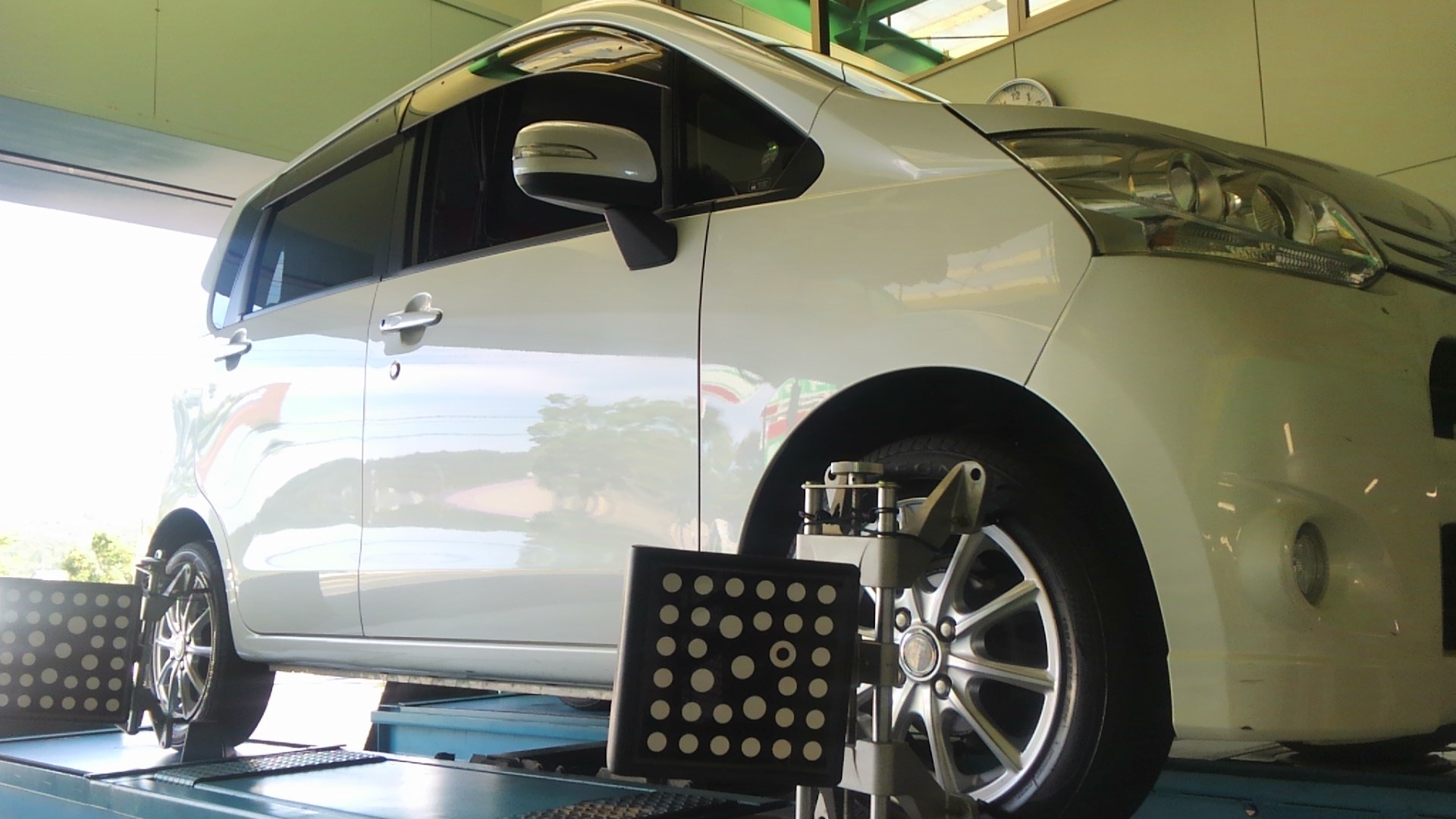 縁石に乗り上げということなので足回りが狂っている可能性がありますよと話をして