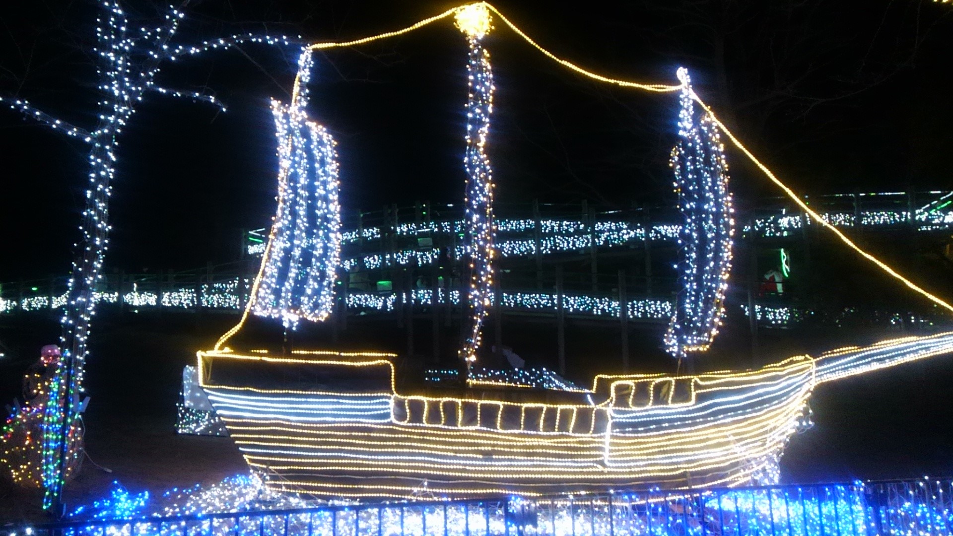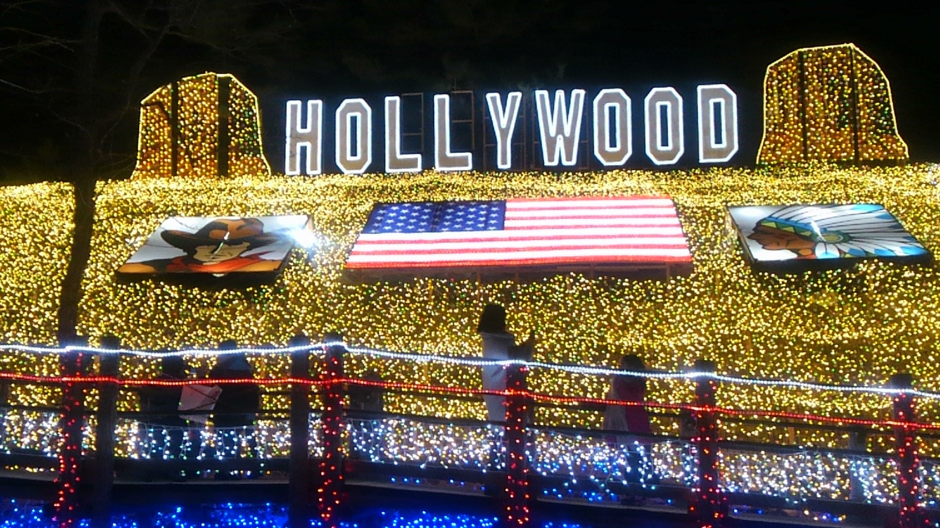 約30万個のLED電球が使われていて、華やかなアメリカの世界が繰り広げられています。
