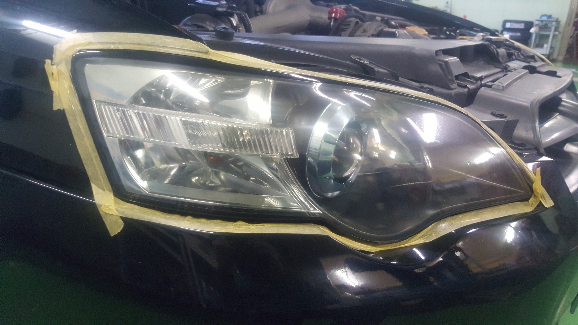 先日ライトレンズが変色しているレガシーのお客様がご来店されましたので