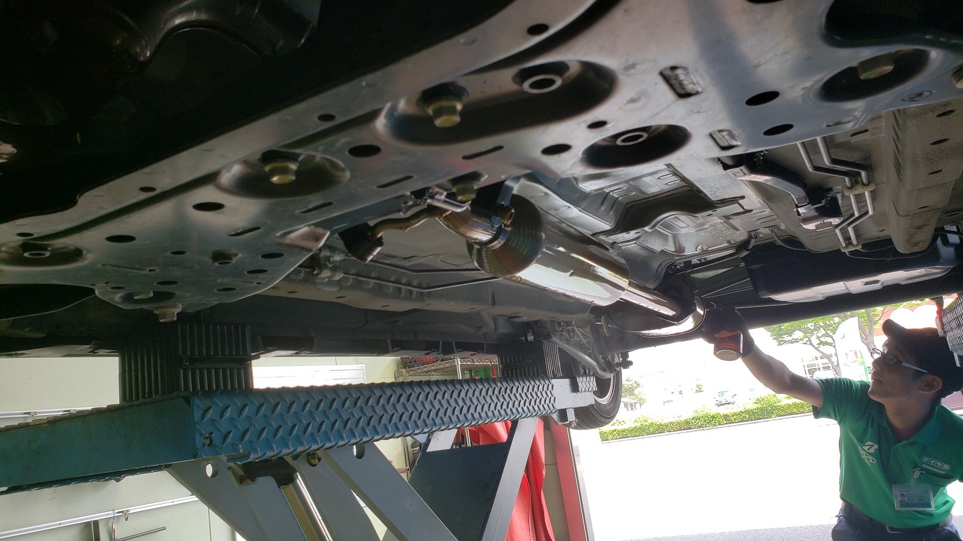 オイル交換で来店されたお客様のお車をリフトアップしてみると