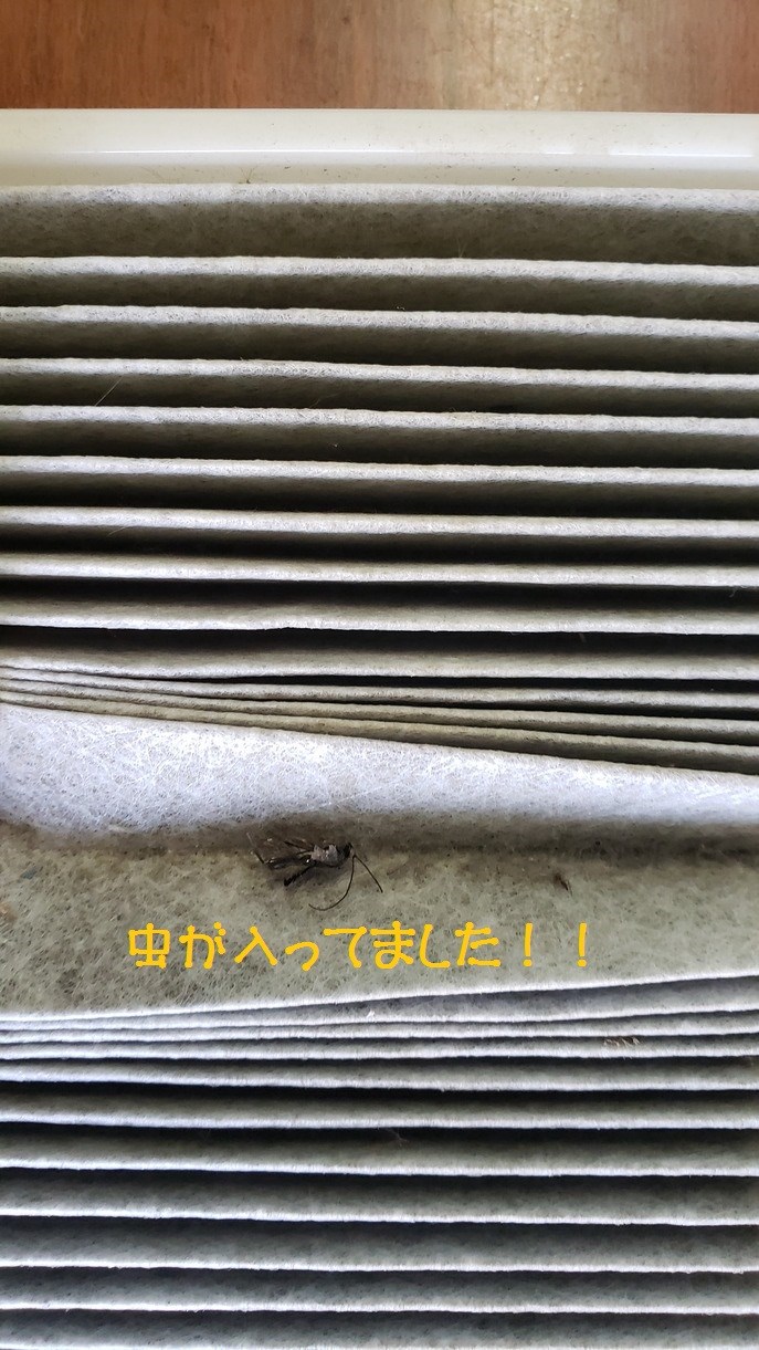 エアコンフィルターは、ほこりや虫が詰まってました!!