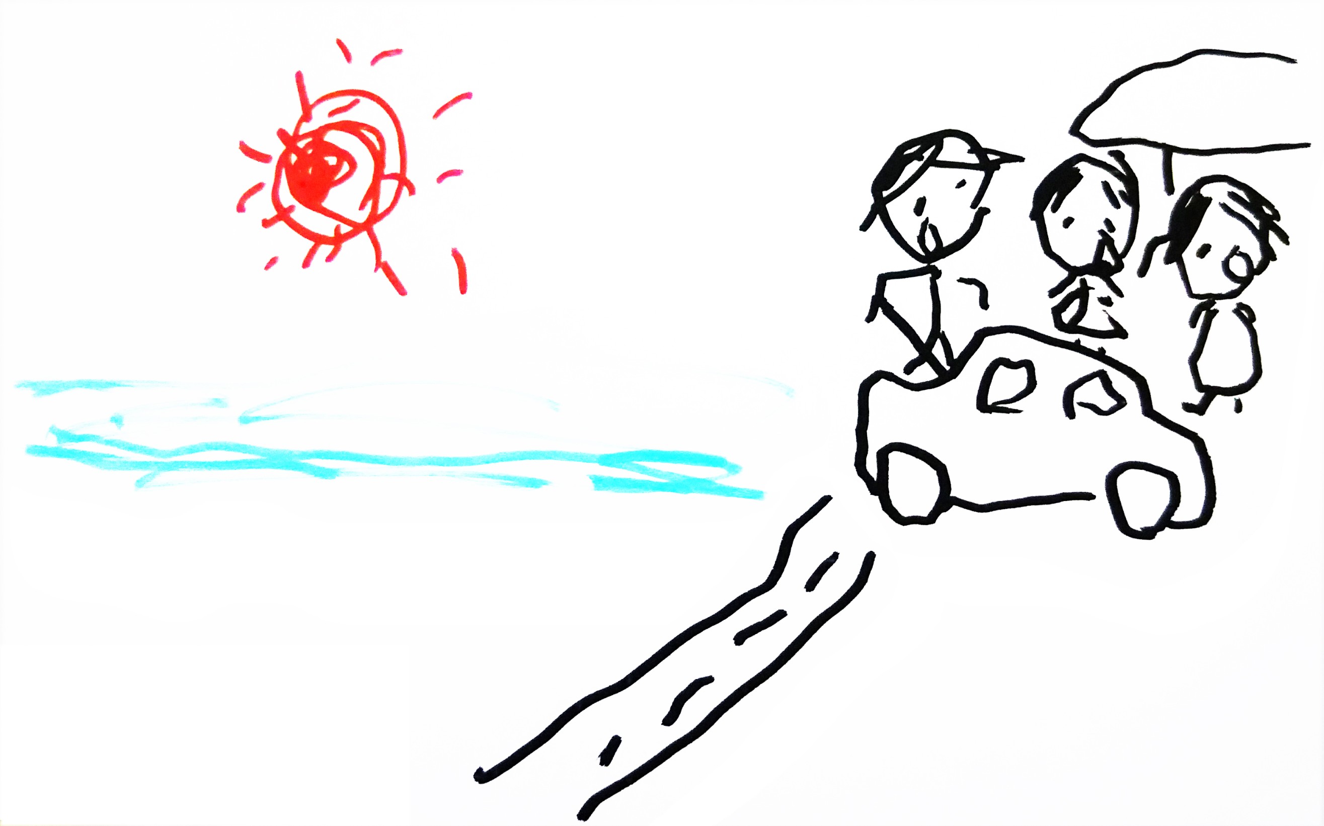 「きょうパパとママと3人で、約束していた海に車ででかけました。