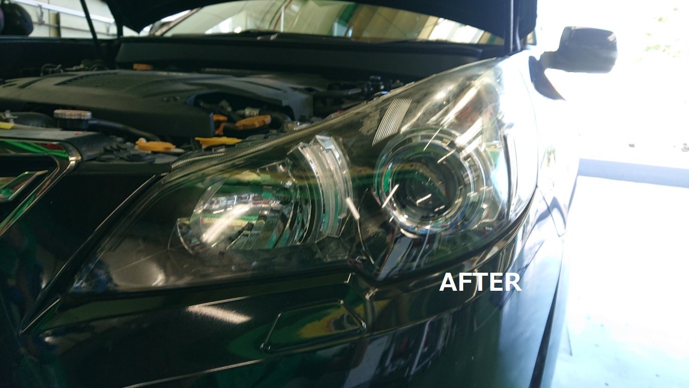 ヘッドライトコーティング ポスト 2018年8月13日 レガシィのヘッドライトコーティングをしました。 ヘッドライトがくすんでいるとボディがいくらきれいでも 古い車のようになって見えますよね! そこでおすすめなのがヘッドライトコーティングです。 黄ばみやくすみを取ってからコーティングすることで夜の運転も しやすくなりますし、なによりも車がきれいに見えますよね! この状態が こうなりました! おすすめですよ~!!! 担当:永田