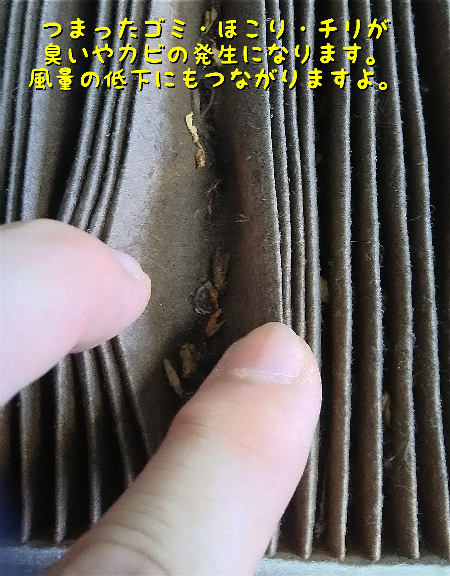 このエアコンフィルターは、外から取り入れた空気からごみ、ほこり、チリ等を除去して、きれいな空気をエアコンに送っています。ですのでフィルターはどんどんつまって、汚れていきます。